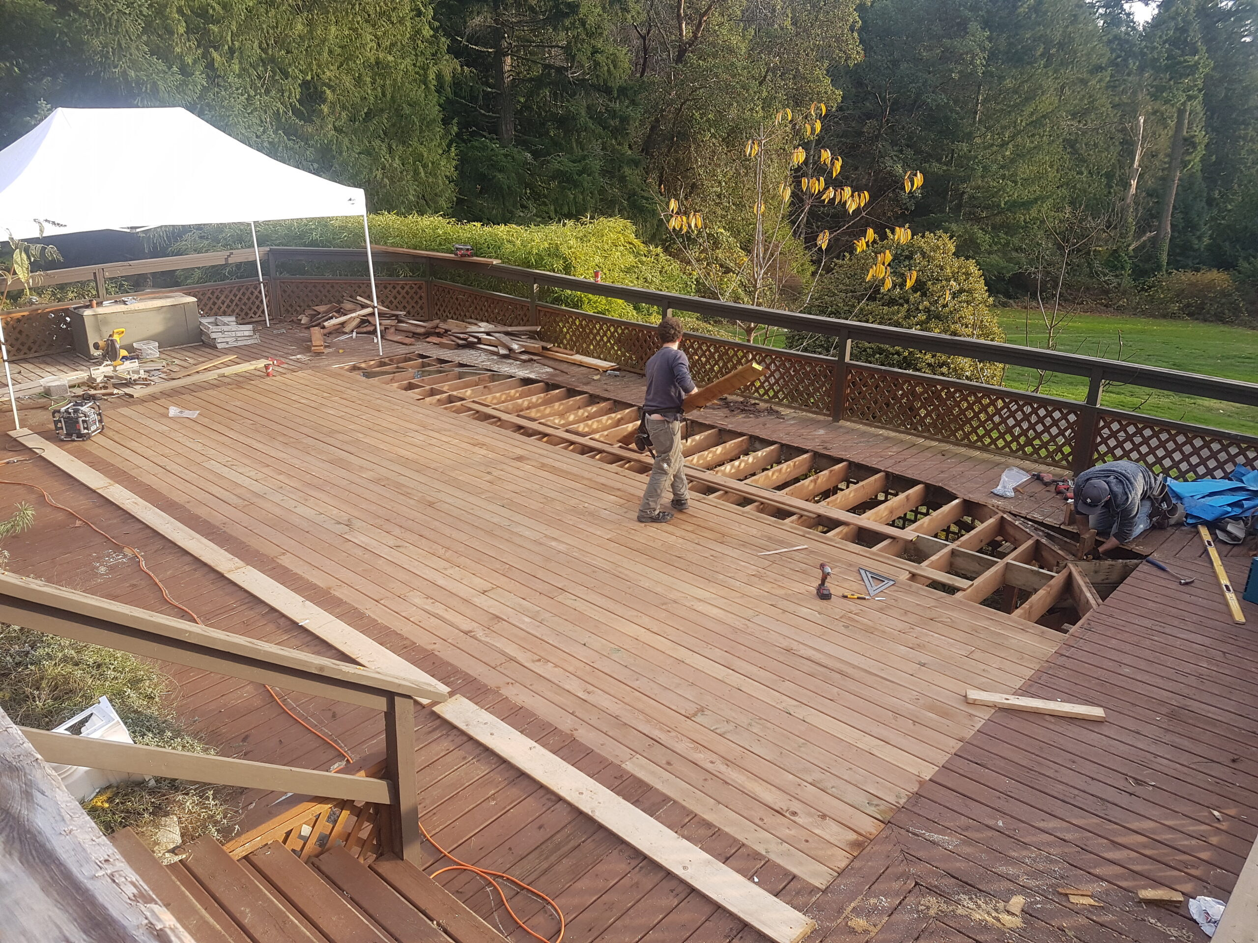 All deck framing is done with pressure-treated hemlock.